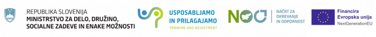Projekt sofinancira Evropska unija iz sredstev Mehanizma za okrevanje in odpornost ter se izvaja v okviru Načrta za okrevanje in odpornost, razvojnega področja Pametna, trajnostna in vključujoča rast, komponente 3: Trg dela – ukrepi za zmanjševanje posledic negativnih strukturnih trendov (C3.K3), investicije C: Uvajanje prožnejših načinov dela, prilagojenih potrebam invalidov, v invalidskih podjetjih in zaposlitvenih centrih. Več o Načrtu za okrevanje in odpornost (NOO) je mogoče prebrati tukaj: https://www.gov.si/zbirke/projekti-in-programi/nacrt-za-okrevanje-in-odpornost/o-nacrtu-za-okrevanje-in-odpornost/