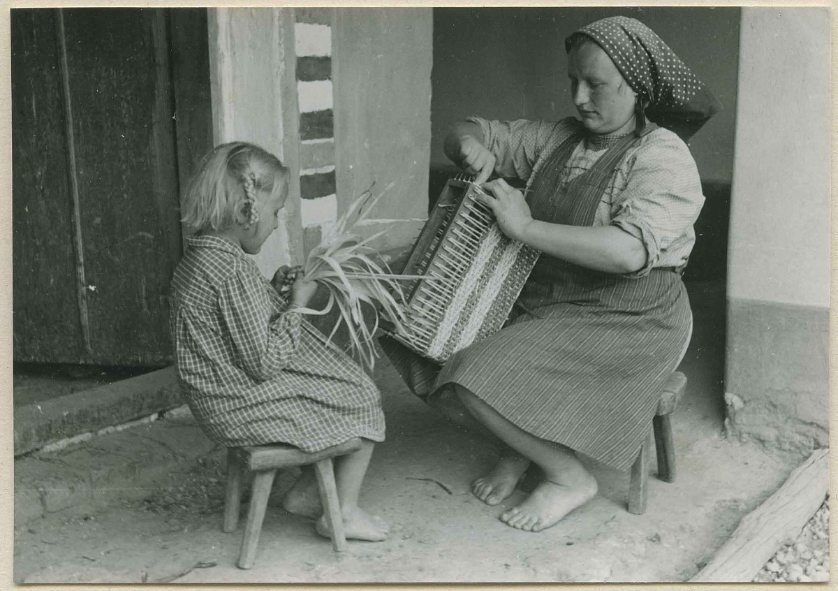 "Pletenje cekarja na Kapci leta 1952". Foto: Jože Kološa-Kološ. Hrani PMMS.