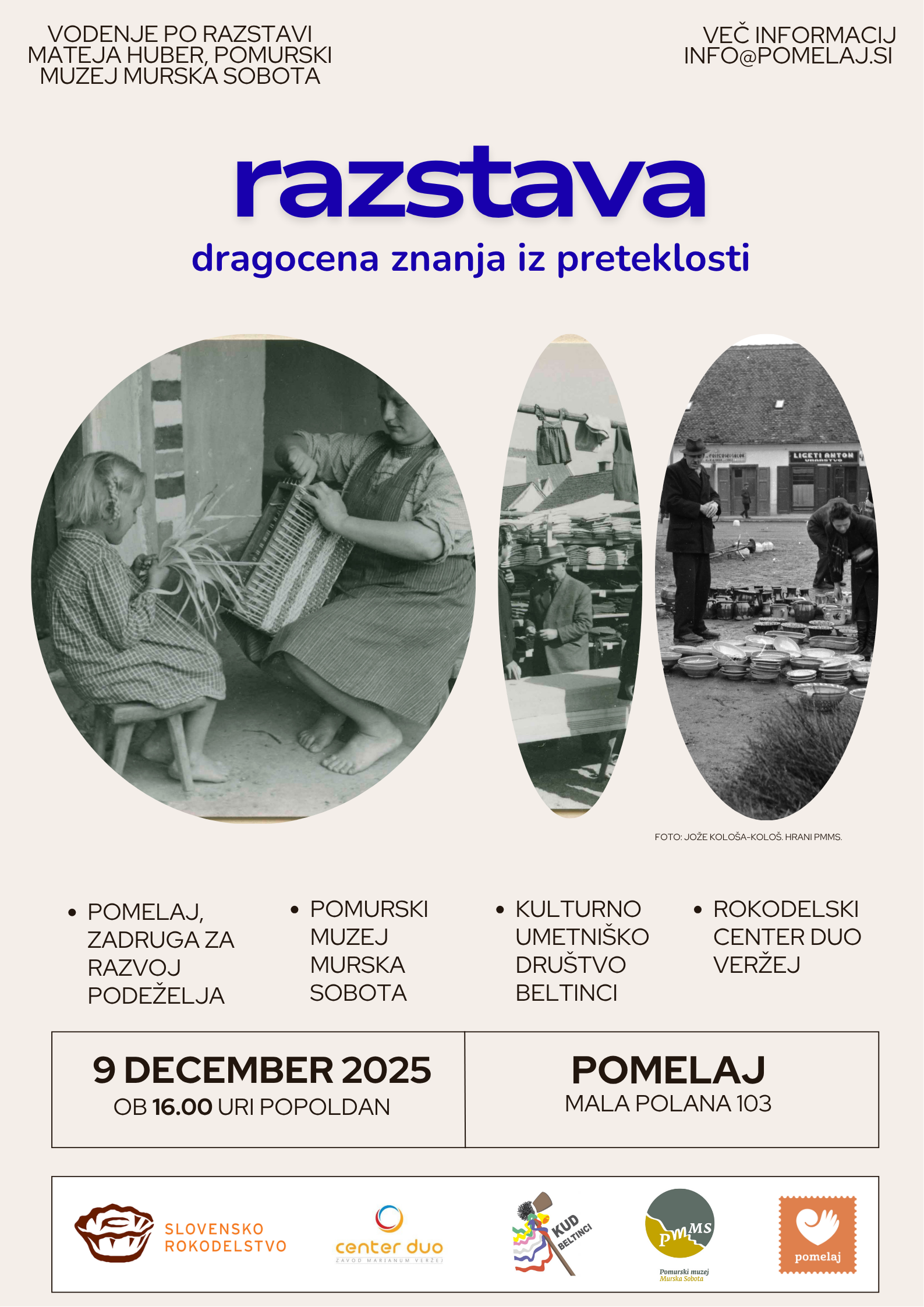 Pomelaj skupaj s partnerji Pomurskim muzejem Murska Sobota, Rokodelskim centrom DUO Veržej in KUD Beltinci pripravlja poseben decembrski dogodek, posvečen bogati rokodelski dediščini našega prostora in njenemu razvoju danes.