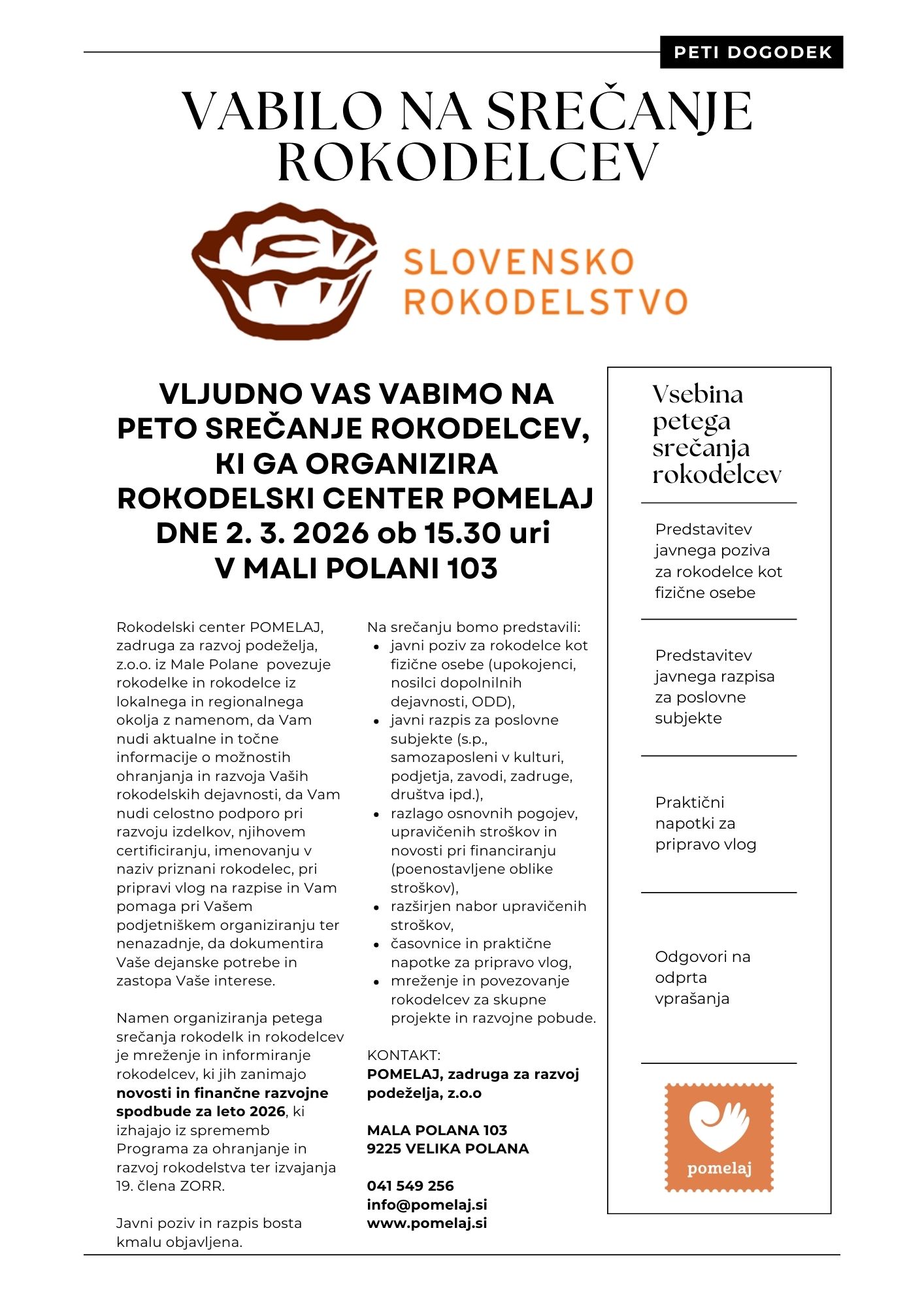 Prosimo za predhodno prijavo na: info@pomelaj.si
